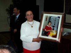 " Isabel Vasques Roque, "uma senhora de enorme dedicação e amor à Colectividade responsável pela manutenção dos trajos", com uma fotografia emoldurada em quadro, tirada em Caranza - Ferrol em Agosto do corrente ano, aquando da sua presença na Feira Internacional de Artesanato daquela cidade.