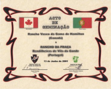 No dia 13 de Junho de 2001, durante a sua 2ª digressão ao Canadá, o Rancho da Praça e o Rancho Folclórico do Vasco da Gama Futebol Clube, da cidade de Hamilton – Ontário, Canadá, assinaram o Acto de Geminação na sede social do Vasco da Gama.