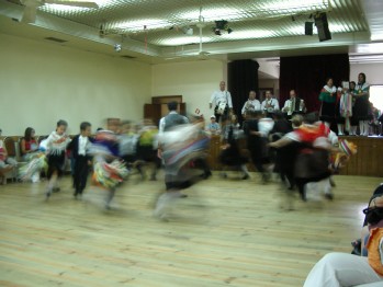 Depois de um Porto de Honra, o Rancho Infantil da Praça presenteou os ilustres visitantes com uma pequena exibição na esplanada do edifício, onde até a Senhora Prefeita dançou.