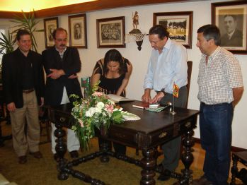 Depois de assinar o Livro de Honra da Colectividade, trocaram-se algumas lembranças, pelo Rancho da Praça foi-lhe entregue o livro dos 60 anos c/encadernação especial; a medalha dos 25 anos da Geminação Vila do Conde - Ferrol; a medalha dos 75 anos do Rancho da Praça e um galhardete e um guião da Associação e pela Prefeita, foi entregue uma pintura a óleo de um dos artistas pernambucanos.
